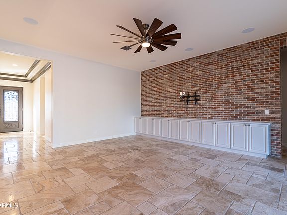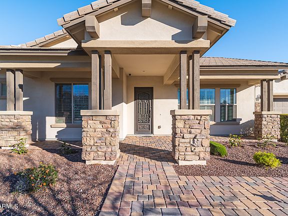With a resort style backyard, this 2016 single story home sits on the most desirable tree-lined street in the coveted Village at Litchfield Park. This 4 bedroom, 4.5 bathroom home features amazing upgrades including a chef's kitchen with stainless steel appliances, a pot filler as well as a custom wine station. In addition, your primary suite has a sitting room, and separate exit to the backyard. This home is perfect for entertaining as you relax in your beautiful backyard complete with a spa that spills into your diving pool, surround sound and outdoor TV, mature landscaping with fruit trees and artificial turf. With an extended garage as well as a separate air conditioned storage area you will have plenty of space for your vehicles as well as a workout space.