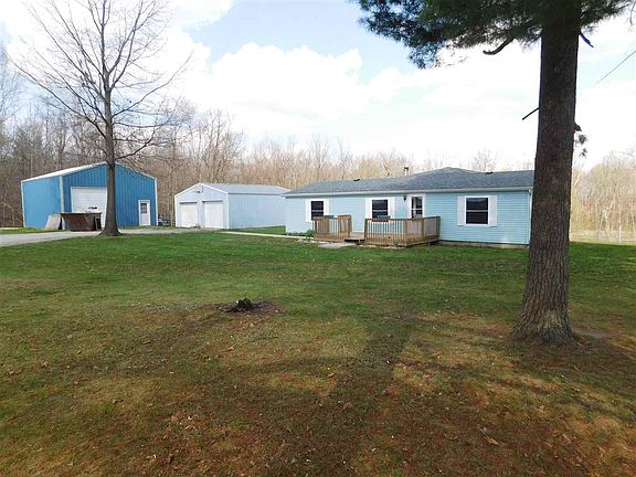 Move in ready country home located on nearly 4 acres set up for horses. New carpet and paint accentuate the Amish craft made kitchen. loads of counter space, slide out drawers, excellent storage highlight this chefs kitchen. large master suite with walkin closet. partial basement for canning storage or extra living space. mature shade trees. Extra out buildings with a 2 car garage and pole barn/shop. Trails through the woods for your walking or ATV pleasure. new roof.