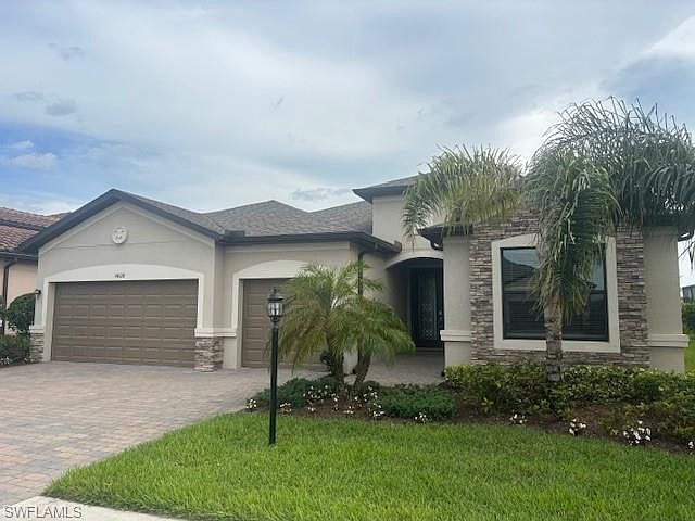 A STUNNING HOME ON AN AWESOME LAKE + NATURE VIEW LOT W/SOUTHERN EXPOSURE! Summerville II model featuring 3 bedrooms + den, 3 bathrooms and 3-car garage, the most popular + sought-after floorplan in Portico (already sold out by the builder)! Welcome to this meticulously designed smart home, which offers the perfect blend of elegance, comfort, and modern living. As you step through the beautiful entry double doors w/glass inserts that let a lot of natural light into the home’s foyer, you are greeted by a spacious and inviting living area, where the open-concept layout seamlessly connects the gourmet kitchen, dining area, and family room, creating an ideal space for gatherings and relaxation. The chef-inspired kitchen is a culinary masterpiece, featuring a huge granite island w/bar, stainless appliances, walk-in pantry and white cabinets w/ample storage space. Retreat to the spacious owner’s suite w/private lanai access, two walk-in closets and en-suite bathroom w/large walk-in shower. The two other bedrooms also have their own private bathrooms. The extra den w/French doors is ideal for a home office or hobby space. The covered, screened-in lanai is a tranquil oasis for outdoor relaxing. And the backyard has plenty of space to add a custom pool. Enjoy spectacular lake and nature views from one of the nicest lots in the whole community! This home has many upgrades throughout, incl. water conditioner, epoxy garage floor, crown molding and extended, transferable warranties for A/C and appliances (A/C until 8/2030 and GE appliances until 8/2026). NO FLOOD INSURANCE REQUIRED! Portico is a highly sought-after community w/Low HOA fees. Amenities include clubhouse, community pool, gym, yoga/exercise room, tennis, pickleball, basketball, play area. Pets, Fences & LSVs permitted! Great location, short drive to I-75, shopping, restaurants, schools & more!