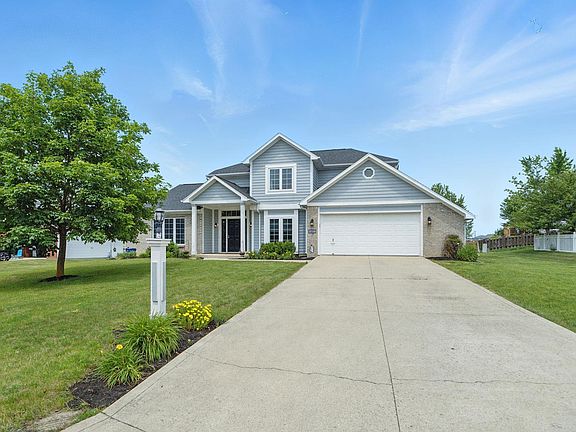 Welcome to summer living in Walnut Creek! This 2,044 sq ft stately two-story home in Aboite Township offers the perfect blend of space, comfort, and fun in one of Southwest Fort Wayne’s most loved neighborhoods. From the moment you arrive, the inviting curb appeal and manicured landscaping set the stage for what’s inside—bright, airy spaces filled with natural light and room to relax or entertain. Step inside to soaring ceilings and sun-filled rooms that instantly feel like home. The open-concept layout is ideal for summer gatherings, with the great room with tall ceilings flowing seamlessly into the kitchen and dining spaces. Just off the foyer, a flexible room with a large front window can serve as a formal dining area, playroom, or a bright home office to enjoy warm-weather views. The kitchen is as functional as it is stylish, featuring matching Whirlpool appliances, a spacious pantry, and durable tile flooring that’s easy to clean after afternoons spent gardening or playing in the backyard. The adjacent updated laundry room includes a washer and dryer that stay with the home so you can move right in. After a full day outdoors or at the pool, retreat to the main-level primary suite—a calm, cool space designed for rest and recharging. The en-suite bath includes dual vanities and a generous walk-in closet. Upstairs, the second floor offers the perfect zone for the rest of your home, complete with two additional bedrooms, a full bath, and a large storage closet. At the top of the stairs, a cozy landing creates a quiet nook for reading on a rainy day or relaxing with a cup of coffee as sunlight filters in through the windows. Out back, summer fun continues with a stone firepit seating area, perfect for evening s’mores or quiet nights under the stars. The spacious yard has plenty of room for a trampoline or swingset—negotiable with an offer—and space to create your own backyard oasis. Raised garden beds stay and you may even get to reap some of the produce come later this summer! With top-rated schools, trails, parks, and local amenities just minutes away, this home is the perfect spot to enjoy everything SW Fort Wayne has to offer this season and beyond.