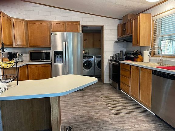 This 2-bedroom 2 bath plus den is settled in one of the highest sought parks in Oregon City. Pride of ownership throughout this wonderful home! Open spacious family room larger than most that flows into the dining room. Kitchen offers hardwood cabinets, new stainless-steel fridge and stove/oven. Large primary bedroom with large walk-in closet, primary bath has new walk-in shower. Large utility with washer/dryer and wash tub. You will love spending many summer nights in your newly landscaped fully fenced back yard and patio, where you will be surrounded by the quiet sounds of the country type setting. Many upgrades to the home : new windows, all new shades, new roof, flooring, water heater, furnace, heat pump, new exterior paint.2 sheds, carport. Park offers RV parking, playground, walking trail, dog park, close to shopping bus line, schools, restaurants and more. Space rent will be $752 a month.