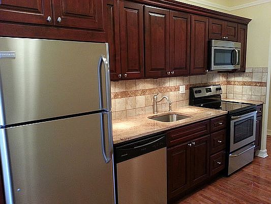 large beautiful one bedroom w eat in kitchen, cherry wood kitchen cabinets, granite counter tops, stainless steel appliances, marble tiled bathroom, many large closets, hardwood floors thru out, very sunny apt in well maintained walk up building near express trains, buses, stores heat and hot water included