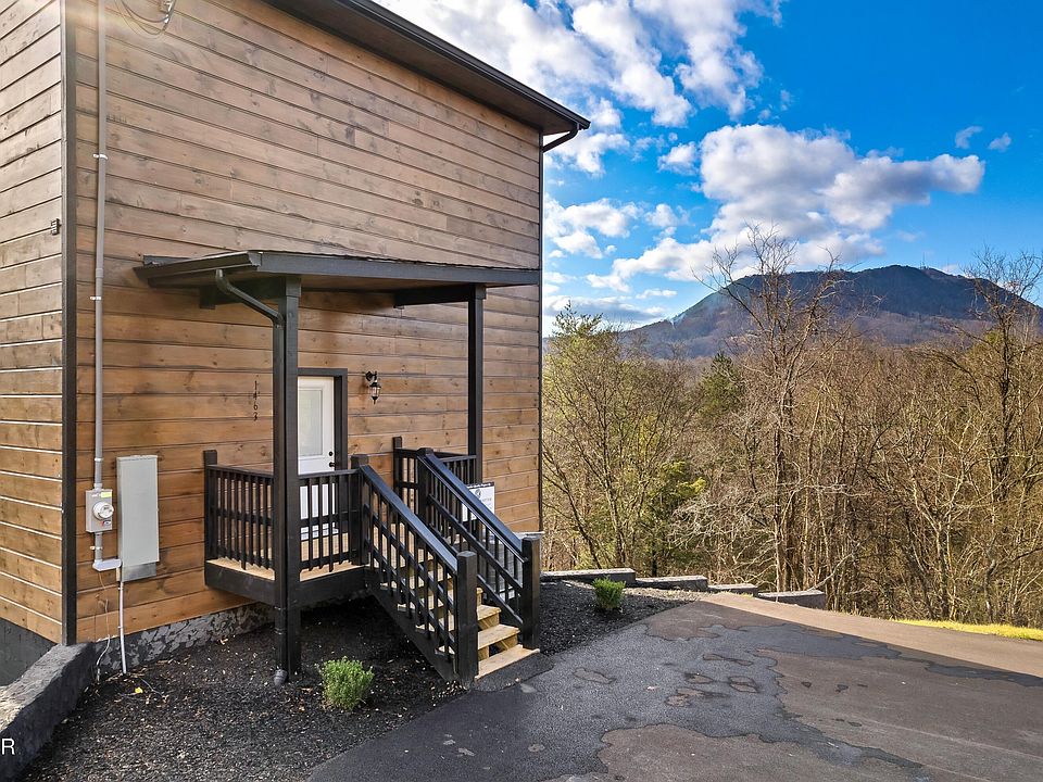 Brand new ROOFTOP DECK cabin with an AMAZING VIEW!!! This 2BR/2BA has a 0.7+ acre lot on a quiet road just far enough away to avoid all the heavy traffic, but also 10 minute drive to the Parkway. The main floor features an open concept living room and generously sized kitchen. Downstairs features two bedrooms each with ensuite bathrooms. The top floor features a large open air rooftop with a great seasonal mountain view that will help you stand out from all the others. Load it up with games and seating to make sure your guests get both peace & quiet as well as a view that's hard to beat. Some drone photos used in listing. If you can't make it into town to see it for yourself, ask your realtor or the listing agent for a walkthrough video.