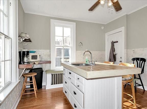 Cute Cute Cute! Vintage Crete at an affordable price! Classic bungalow with expandable walk-up attic and full basement. Bath remodeled with clawfoot tub 2016-9 Ft Ceilings-Unheated sunroom could convert to office or laundry room, hardwood flooring, remodeled kitchen with custom bench, huge dining room, deep fenced lot with patio-Covered front porch-Some electrical and plumbing updated-Sump pump 2016-Freshly painted-Original arched doorways and windows plus arched double front doors could be brought back to yesteryear grendeur. Walk to everything downtown Crete. Enjoy the Memorial Day and Christmas Day parades from your front porch! Bring your vintage ideas and get started on your dream! No FHA or VA Financing.