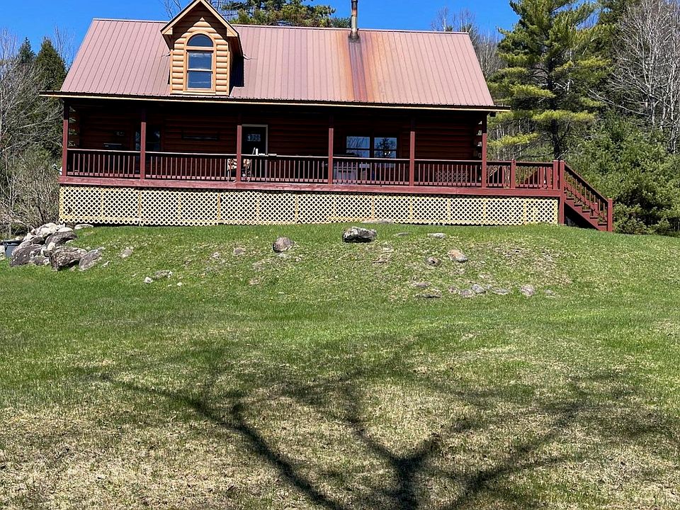 Private log home located on 16 acres offering large barn/garage space, partially paved driveway and nice front porch overlooking your spacious front yard. Boasting 3 bedrooms, 1 full and 1/2 bath. Open concept main living space. Come and enjoy the wildlife, seasonal pond out back and all that Upper NYS has to offer!!!