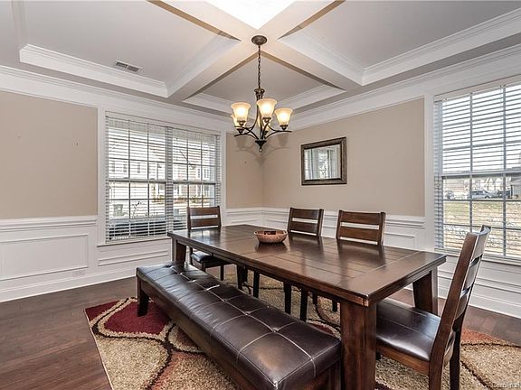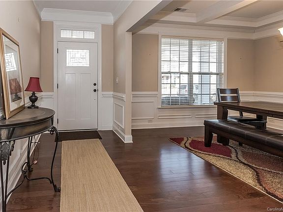 Beautifully upgraded, open floor plan, 5 bedroom home w/ guest suite on the main floor! Crown moulding, coffered ceilings, & gleaming hardwood flooring greets you as you enter this home. Spacious dining room! Kitchen features granite counters, custom tile back splash w/ listello detailing, hardwood floors, espresso cabinets w/ mouldings & bump ups, stainless steel appliances including a 4 burner gas cook top, double wall ovens, & microwave, surround sound, & recessed lighting! Hardwood floors continue through great room w/ ceiling fan & gas log fireplace. Upstairs you will find four additional bedrooms including the owner suite. This owner suite features a private sitting room, tray ceiling, walk-in closet, & private bath. Bath has granite counters, seamless glass shower, & sep garden tub, ceramic tile floor. Laundry is conveniently located on the second floor! Two guest rooms share a Jack&Jill bath in addition to the hall bath. Third floor has a massive rec room w/ multiple closets!