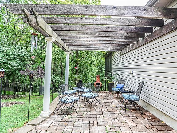Custom built 1½ story home nestled in the woods in golf course community. All the amenities & desired features! Great curb appeal w/brick & stone exterior, 3C over sized garage, screened porch & 2 decks on nice lot. Some special features of this home: 2 story foyer & great room, 2 fireplaces, custom bookcases, dining rm ceiling & molding detail on walls. Enter thru a beautiful arch w/columns into breakfast rm & huge kitchen, maple cabinets w/crown, large center island, SS appliances, granite counter tops, ceramic tile flr, walk-in pantry, Andersen windows throughout. Master bedroom suite has two walk-in closets, luxury bath w/double sinks, whirlpool tub & separate shower. You will enjoy the finished lower level with 10' walls and a 2nd fireplace, wet bar, 4th bedroom and full bath. Look out over the back yard from your 2nd lower deck. Or enjoy your morning coffee on your screened in deck off the kitchen area.