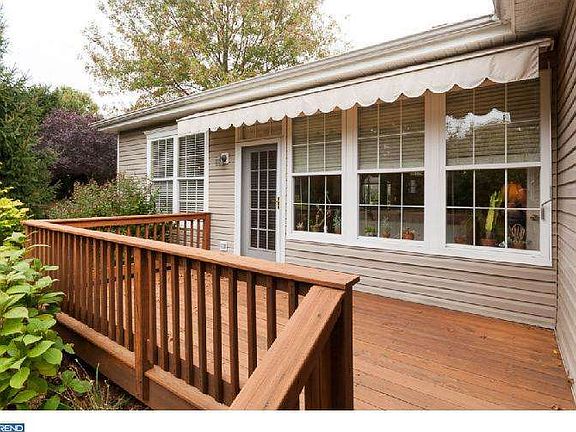 This single home in the sought after Hershey's Mill 55+ community with a bright and open floor plan is decorated in warm but neutral colors and has been lovingly maintained. This move in condition home features a center hall entrance with hardwood floors, formal living room, dining room, spacious tiled kitchen with lots of cabinet space (42" cabinets), breakfast bar and a pantry, bright and sunny family room that walks out to a beautiful deck with a retractable awning and overlooks an exquisite back yard with lush landscaping. The master suite contains a private master bath complete with an oversized whirlpool tub, stall shower, double vanity, and a large walk in closet, a second bedroom, hall bath, first floor laundry, and a two car garage. There is plenty of storage in the garage or full basement and abundant closet space. Hershey's Mill is a premier 55+ community complete with 24 hour gate house staff for safety and convenience plus a hassle free life style, abundant available activities and is walking distance to shopping.