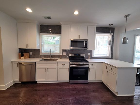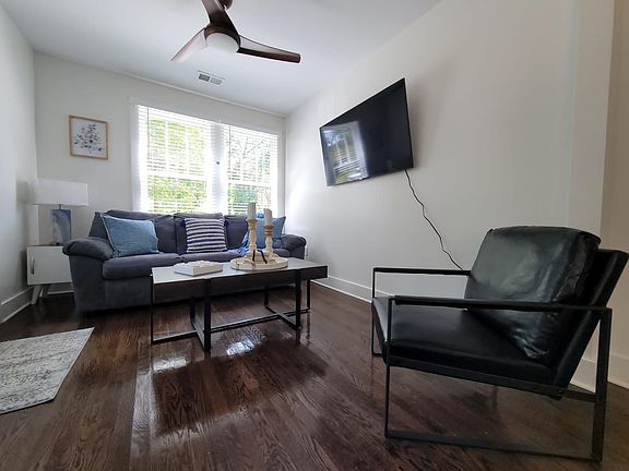 Fully furnished by professional interior decorator, Top to bottom NEW, roof, electric, plumbing, floors, walls, cabinets, counters, trim work, lighting, finishes, paint, appliances, deck, porch, interior, exterior, nothing has been left out. Open floor plan with 3 beds & 2.5 baths single level living calls sanctuary with city living amenities. A side front entry in your driveway for 2 cars or pull around back inside your fully fenced yard with a 3 row car port and go in your back entrance under safety & privacy. This home has hardwoods through out all main areas and bedrooms, stone tile in all bathrooms with full vanities & storage galore. Back bedroom with en suite and sliding doors opening onto your deck create true indoor outdoor living. Additional 2 beds make this w/ 1.5 baths are perfect for for office, guests, and kids, or roommates. New windows & plenty of light make your quartz countertops shine, stainless steel appliances (smart tech fridge), Nest system and more. Walking distance to DT East Point, Marta, Tyler Perry Studios, parks, beltline, shopping, restaurants, farmers market, City offices, & the list goes on and on. Flexible terms, Long Term, short term and Month to month option available Flexible terms available, Long term, short term and month to month option available
