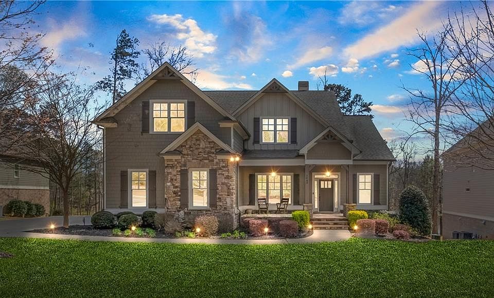 Get ready to enjoy the sights and sounds of nature in this one-of-a-kind home located on a premium water lot. This gorgeous home features a master on the main plus an extra bedroom on the main level (perfect for a home office or guest suite). Upon entry to the home, take in the spectacular views of the neighborhood pond from the floor to ceiling windows in the Family Room. The open floor plan features custom bookcases, stack stone fireplace, coffered ceiling, large open chef COs kitchen with granite counter tops, light cabinets, double ovens, stainless steel vent hood, and a water purification system under the sink. As an added bonus the seller will be leaving both refrigerators at no cost to buyer! The private master bedroom offers a stunning view of the water, features a large walk-in closet, double bathroom vanities with granite tops, large garden tub, separate tiled shower, plus a private water closet. The formal Dining Room opens to the Family Room making it perfect for entertaining and large gatherings. The home also features a Laundry Room on the main floor with plenty of extra space to add a mud room. The stairs to the upstairs level are located in the back of the house, and lead to an expansive loft which overlooks the Family Room and boasts an amazing view of the pond. There are 2 large secondary bedrooms located on the second floor and share a jack and jill tiled bathroom. The lot sits across the street from a neighborhood tree lined easement, offering lots of privacy and beautiful views of nature from the front and back of the home. This craftsman style home with stacked stone is an absolute Show Piece! The owners have spared no expense in extras and upgrades. The windows in the Family Room are covered with 3M protective film, letting light in but keeping UV rays out and energy costs down. A recirculating hot water system and an ozone water softener have been installed in the home, which means no detergent needed! The garage floor has been painted with epoxy, the large unfinished basement has been insulated, and they made $10,000 in yard updates and improvements. This is a TRUE 10 in all aspects! As an added bonus, the home is located in a Conservation Community which features a neighborhood pool, walking trails around the water, stocked pond, many acres of common space, and an active HOA. The community is located in an Award-Winning School District. There are plenty of stores and restaurants located close by for your convenience.