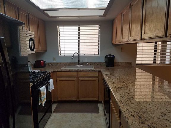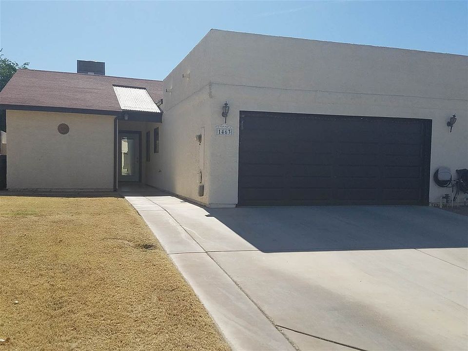 Property shows pride of ownership. 2 bedroom 2 bath located in Sunset Mesa with tile throughout and finished 2 car garage with epoxy floor and cabinets. Low maintenance yard with artificial grass in back yard, concrete where flower beds would be in front walk way. AZ room. open floor plan. Granite counter tops in kitchen. taller wall in back yard.