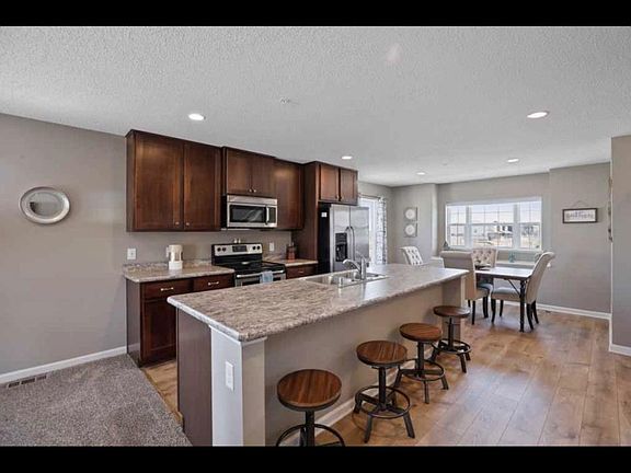 Fabulous unit in newer development close to freeways, parks and entertainment! Enjoy the perks of townhome living in this end-unit with abundance of natural light. Living room features gas fireplace and opens up to kitchen/dining with access to spacious deck...perfect for grilling and enjoying MN summer nights! Revel in not one, but TWO master suites on upper level with private en-suite bathrooms. You'll enjoy laundry upstairs as well. Lower level 3rd bedroom is currently used as an office area, but is a great space for den or family room too! Owner pays for the water and trash. Tenant is responsible for gas and electric. No Smoking allowed. No pets allowed.
