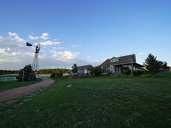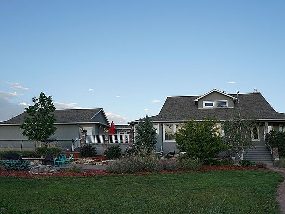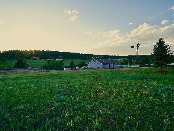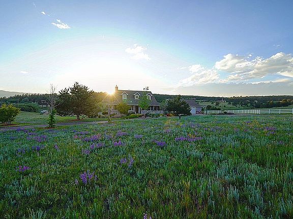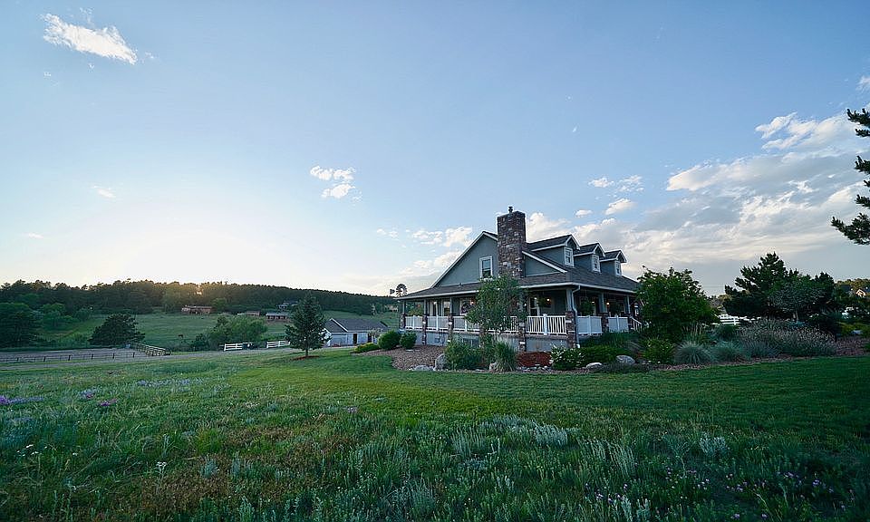 Charming home on 5 acres with sweeping Front Range and Peak views. Custom home shows like a model with Great Room concept, gorgeous kitchen with granite counters and island, SS appliances, eating nook with wrap-around windows and Peak views. Beautiful Dining Room has inlay tile and wood floors and opens to enclosed breezeway. Open concept Family Room with walnut inlay floors. Office on main floor, main level Master with large walk-in closet, remodeled bath with walk-in shower, walk out to Trex deck w/hot tub. Exceptional basement with 2nd gorgeous kitchen, eat-in bar, appliances and Silestone counters. Rec Room with pool table, theater room with all accessories, plus Bath and Bed. Upper level has two large bedrooms, one with huge playroom closet plus loft area. Newly remodeled Barn (2019-2020) has four-12x12 stalls, each with run access and electrical, 15x36 storage area, Tack Room, plus water and electricity (240V - 30A service). Extras include: newly custom built “horse hut” lean to with electric, water and custom gates to enclose or open in the summer, 100x80 outdoor arena, large west facing deck with hot tub, dog run and a creek running along west side of property.