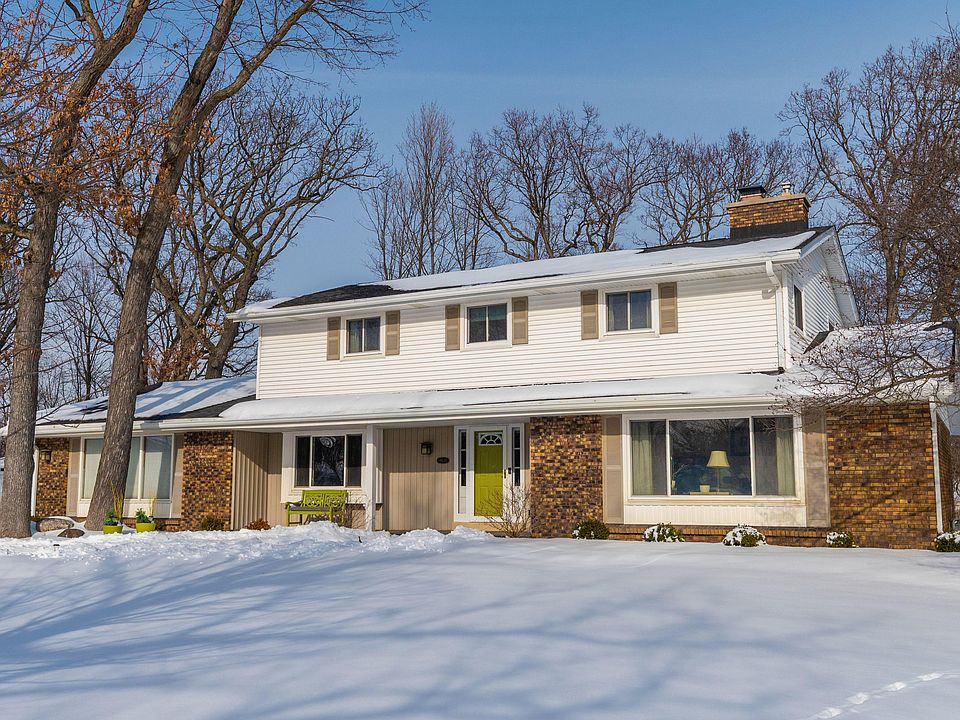 Delightful Colonial tucked away on a cul-de-sac in the Elmbrook school district! Double sided NFP brings warmth and coziness to both the sunken LR and spacious FR with HWF. Formal DR opens up to beautifully updated KIT featuring great cabinet/counter space, stainless appliances, and island. Tiled 3 season room with vaulted ceiling and skylights offers a welcoming spot to relax. Half bath and laundry area complete the main level. Upper level with four bedrooms, all with HWF and recessed lighting, plus updated master bath and second full bath. Elfa organizers in all closets! Warmer weather is coming, get ready for that patio with built in gas fire pit! Trees fill in nicely to create your private oasis. Attached garage plus storage shed. Newer furnace and AC. This one must be seen!