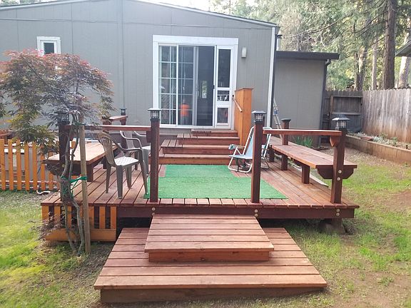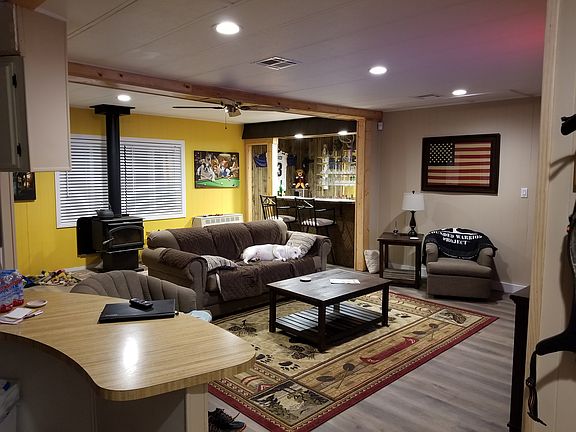 Spacious 2 bdrm 2 bath home with bonus room on a permanent foundation with newly remodeled interior!! New roof in May 2018 plus so much more you will need to ask for the complete list of improvements! The large covered front porch welcomes you to both the main entrance to the living room and sliding door to the family room for easy access and enjoyment. Inside this home has been freshly painted, newer vinyl dual pane windows & new blinds plus updated lighting and new flooring & baseboard. The kitchen has new double wall ovens, updated sink & fixtures & painted cabinets, lots of cabinet & counter space and a breakfast bar that opens to the family room. The family room is spacious & inviting with a new wood stove & some custom wood trim décor added in family room, built-in bar area, additional wall heater for back-up heat and French doors with louvered blinds between the glass panes. Master bedroom has a sliding glass door to a new back patio & a beautifully remodeled private bath soaking tub, new walk-in shower & dual sinks. Guest room has a walk-in closet & access to the 2nd bathroom. Landscaping front & back, mature hedges for privacy along sides, updated timers for watering system, asphalt driveway & parking area can easily hold 6+ cars, attached garage with additional workshop, detached workshop/storage in back is fully finished and has power, 2nd storage shed in back yard, pet door from laundry room to screened in back porch gives access to the fully fenced back yard too!