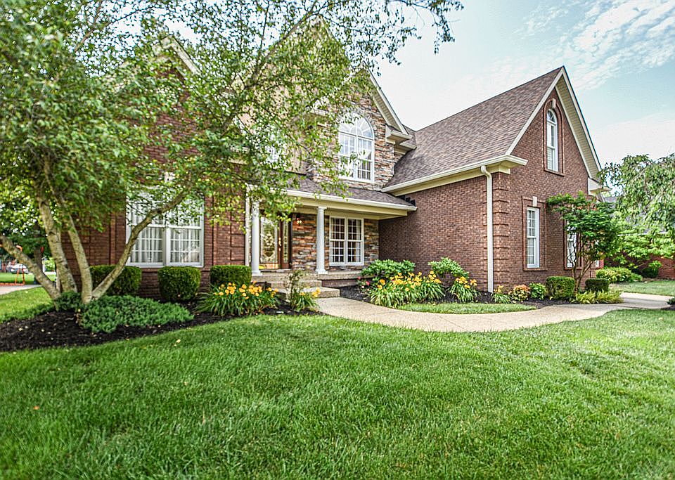 This attractive brick and stone home, by renowned Builder, David Bright, displays quality and craftsmanship throughout. High-end style and finishes. Everything is ready for your move, refinished hardwood floors, cabinets, new paint, new carpet. Meticulously cared for one-owner pet-free home. Professional window treatments can remain. Covered front porch and side portico. THREE-CAR GARAGE has epoxy floor. Flat lot with trees and flat driveway allows for easy entrance to the large garage. Creatively high-end finished basement with granite bar, stone fireplace, 5th bedroom, exquisite full bath, and huge closet. Covered trex deck off of kitchen.