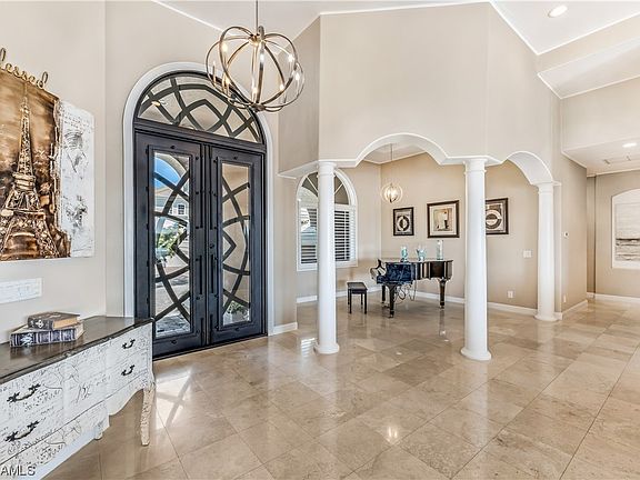 THE BEST KEPT SECRET IN FORT MYERS! STUNNING GULF ACCESS POOL HOME IN PRESTIGIOUS CONNIE MACK ISLAND. Boaters,you have found your dream home.Close to Sanibel Island & just minutes to the open deep waters and gulf access.This WATERFRONT RESIDENCE features 4,285 sqft.,4 BR,Den,& 5BA.SOLD FURNISHED.The grand iron entry doors lead to soaring ceilings,corner sliders with fabulous water views & vast entertaining spaces. Large great room with beautiful white stone wall & fireplace accompanied by a dining area, spacious kitchen are the focal point of the main level.Entertain in style while guests enjoy the multi level lanai spaces,sparkling pool & spa.Many highlights of this home;Kitchen and bathrooms have been beautifully remodeled, impact windows,hurricane electric shutters,elevator,PRIVATE DOCK,double jet ski lift,travertine tile & wood flooring,large crown molding.The fabulous kitchen has custom wood cabinetry,granite counters,island,&Monogram appliances.Spacious primary suite sits opposite the remaining bedrooms to provide the ultimate serenity with the spa-like bathroom &breathtaking views.Immense lower level.Low density Island w/amenities including clubhouse,tennis,pickleball,&pool.