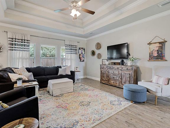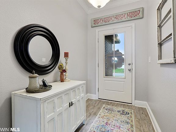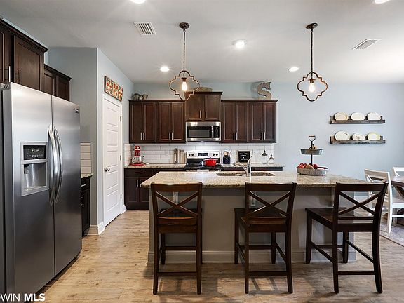 Immaculate home in the Woodmont community! Woodmont is centrally located and minutes from Foley schools, the hospital, and the white sandy beaches. This Iris floor plan features luxury vinyl plank flooring, granite countertops, tray ceilings, and a new gas tankless hot water heater! The open kitchen is equipped with a custom tile backsplash and custom pendant lights over the bar. The master offers plenty of space and has a HUGE walk in closet, garden tub, and separate shower! Other features include a covered back patio, fenced backyard, gas line to the grill, Simplisafe system, and a side entry garage.