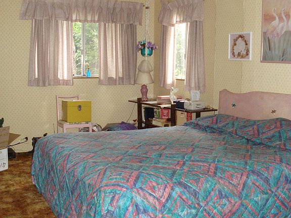 GREAT 2 BEDROOM, 2 BATHROOM MOBILE NESTLED IN THE TREES. Open living room, dining room & kitchen nook with wood stove. Home offering newer windows, newer rear slider, new roof in 2009, newer flooring, new water heat, newer paint, spare bathroom has been updated. Spacious master suite with walk in close. 2X4 framed with all exterior walls sheet rocked & re-insulated. Covered back deck with over half an acre & beautiful treed view. Large parking area. Newer shed.