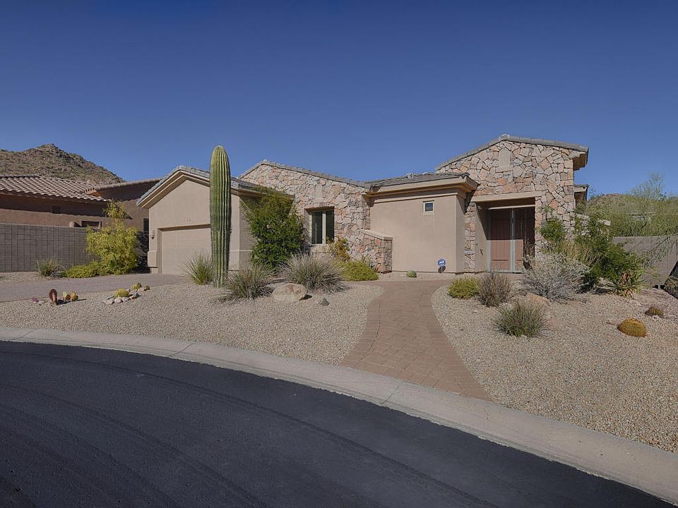 Need additional garage space? Oversized temperature controlled 4 car garage is a rare find in this gated community. Beautifully appointed home that's perfect for entertaining. Chef will love the large open kitchen and extended breakfast bar for guests. Separate living room that could be office/den or 4th bedroom. Owners added the high end mechanical Roller shields for security, privacy and easy for lock n leave. Nicely landscaped front and backyard with cacti and desert trees. Private gated courtyard assures privacy and relaxation for you and your guests. Guest quarters which is 3rd bedroom has separate entrance thru courtyard. Plenty of room for pool. Perfect community for the active lifestyle with nearby hiking trails. Short distance to Mayo Clinic and shopping/restaurants.