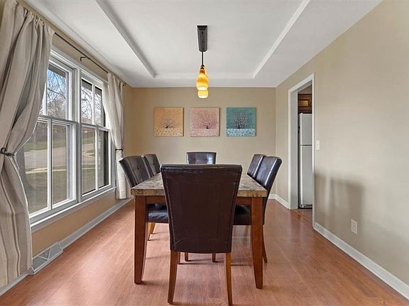 Fabulous JoCo opportunity under $300k! Spacious corner lot in amenities-filled Lenexa with ideal I-35 and I-435 highway access. Soaring ceilings throughout with trendy wood beams. Cozy brick fireplace and oversized great room opens to kitchen highlighted by granite counters. Featuring both a formal dining room and eat-in kitchen area. Generously sized bedrooms, en-suite primary with vaulted ceilings and large back yard to boot. Finished basement space, perfect for home office or playroom. Minutes from dining and shopping along 87th and 95th streets with recreation-filled Sar Ko Par Trails Park just up the street!