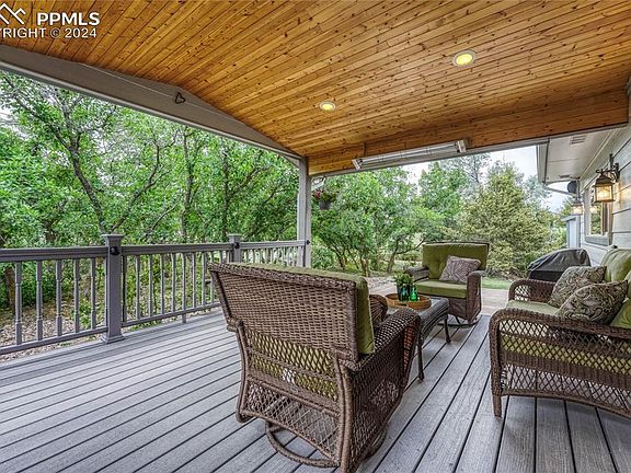 Come take a look at this beautiful 5-bedroom, 3-bathroom, 3-car garage home situated on a fantastic private lot! Located in the established Gleneagle neighborhood, you don't want to miss this one. Imagine having morning coffee or evening cocktails on your covered composite deck equipped with outdoor heaters, tongue and groove wood ceilings and a hot tub. Then stroll over to your very own putting green with access to the Gleneagle open space right in your back yard. As you enter the home, you are greeted with an open concept kitchen, living room and dining area. Beautiful hardwoods shine throughout those areas. The kitchen has great space, a large island with room for bar stools, loads of cabinets, stainless steel appliances and a downdraft gas cooktop. Main level living at its finest with the primary en suite bedroom, two additional bedrooms, full updated bathroom and laundry all on the main. There is hearth room just off the dining area that has so many options for usage and has a wood burning fireplace. Beautiful iron stair railing lead to the walkout basement with plenty of room to use as a recreation room. Two more large bedrooms and a updated 3/4 bathroom finish off basement. The backyard has a park like feel with plenty of privacy, trees, and places to entertain. The large shed is perfect for extra storage and toys. Located close to I25, the Air Force Academy, hiking and biking trails, shopping, restaurants, and coveted D20 schools. You don't want to miss this one!