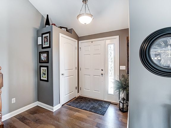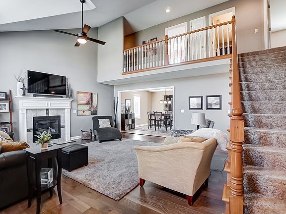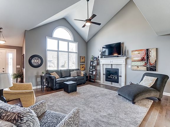 Standing Tall in Pioneer Village. Come and see this 2010 built 2 story home. 4 bedrooms, 3.5 bathrooms, and a 3 car garage on a full finished basement. Clean lines and a vaulted ceiling to the upper level catwalk command attention as you cross the threshold in to the Great Room featuring a gas log fireplace with beautiful tile surround, and quality flooring throughout. Open floor plan flows into the nook and kitchen area. Custom cabinetry, backsplash and a breakfast bar. Kitchen appliances will remain with the home. Lots of cabinet storage and counter space along with a walk in corner pantry. Large Main Level Master suite features a tray ceiling. Master bath has a vaulted ceiling with natural lighting, dual sink vanity, jetted tub with ceramic tile surround, separate stand up shower and walk in closet. Main level laundry/drop zone locker area with upper cabinets and additional built in storage. Up the stairs you'll find 3 large bedrooms, and a shared full bath with dual sink vanity. The lower level is just over 1000 square feet of open recreational living space featuring a wet bar with Grabill Cabinets, the 3rd full bathroom, finished and additional unfinished storage space. Enjoy the outdoor space with a 14 x 14 deck off the rear sliding door, and an 18 x 20 stamped concrete pad with a built in fire pit. Professionally landscaped.