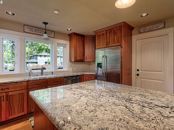 Gorgeous 2450 SF single level 3 BR + Office/Den backing to Springbrook Park..quiet neighborhood! Quick access to Lake Grove & downtown Lake Oswego. Gleaming hardwoods throughout most of home. Fabulous granite/tiled kitchen & custom cabinetry. Wonderful open floor plan includes 3 gas fireplaces! Large master w/fireplace & beautiful bathroom suite inc. large tiled shower & duo sinks. 2nd bath featuring mosaic tile. Two water features!