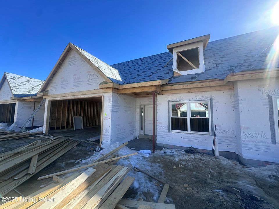 Welcome to a new construction patio home with a walk-out basement located in the Reserve at English Station. This stunning residence offers a perfect blend of design, functional spaces, & luxurious finishes. With 3 outdoor living spaces, open floor plan, white custom kitchen w quartz & GE cafe appliances, LVP flooring, huge primary suite& en suite primary bath w/ large shower/bench, & double vanities.. it's sure to impress! The main living area seamlessly connects the living room w/ fireplace, dining area, kitchen, laundry & covered private porch balcony. ALL 8 ft doors! The lower level has 2 additional bedrooms, a full bathroom, & a second living area with its own private patio! Clubhouse, pool, & workout room with maintenance free living for $250/mo! Model home open Wed -Sun 12 to 4p