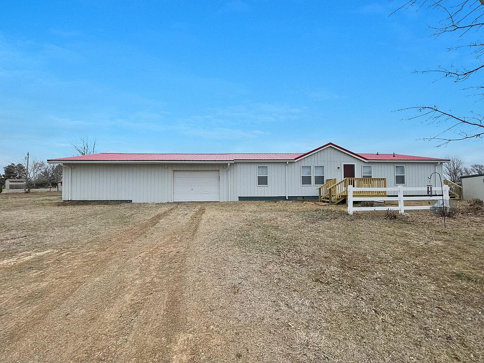 Wonderful 3 bedroom, 2 bath manufactured home on approximately 10 acres with multiple outbuildings! This place is ready for your own little hobby farm. Inside, the home has been remodeled from top to bottom. New sheetrock, new plumbing, new flooring, new windows, updated kitchen and bathrooms, new metal siding, new metal roof, and 2 new decks. The attached garage measures 27'x36', and although it only has one garage door, there is potential for a future owner to add more doors. The large outbuilding has a gravel floor and measures 64x40! Property is perimeter fenced, and cross fenced for livestock. There are several other outbuildings and sheds as well.