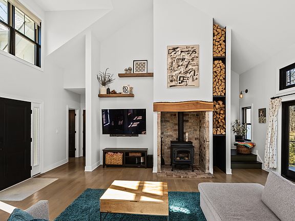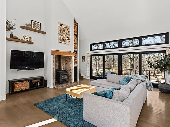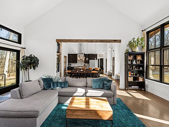 Discover the perfect blend of modern luxury and rustic charm in this beautifully crafted Modern Farmhouse, situated on a serene 2.5+ acre wooded lot in the sought-after Spring Creek neighborhood of Homer Glen. The inviting interior features soaring vaulted ceilings, a cozy wood-burning stove framed by antique brick, and gleaming hardwood floors. The open-concept kitchen is a chef's dream, boasting high-end appliances, quartz countertops, and stylish finishes. The spacious first-floor primary suite offers a tranquil retreat with picturesque views and an elegant ensuite bath featuring an oversized shower, a freestanding soaking tub, quartz countertops, and abundant natural light. For gardening enthusiasts, the attached greenhouse provides the ideal space to nurture your plants while enjoying views of the beautifully landscaped yard teeming with wildlife. The fully finished lower level offers a second family room and a convenient kitchenette, perfect for entertaining guests. Laundry is made easy with a fully finished laundry room, plus an additional hookup on the second floor for extra convenience. The oversized two-car garage includes ample storage and a heated bonus space above - ideal for a home office, gym, guest room, or playroom. Outdoor entertaining is a breeze with a charming backyard fireplace, a concrete pad ready for your future shed, and an electric dog fence for your furry friends. Conveniently located with easy access to I-355 and just minutes from downtown Lockport and Lemont, this home is thoughtfully designed with meticulous craftsmanship and unique details throughout. Welcome to your modern farmhouse retreat - where comfort, style, and nature come together beautifully.