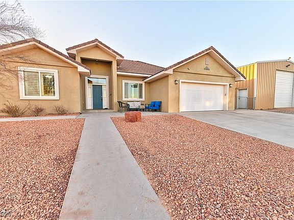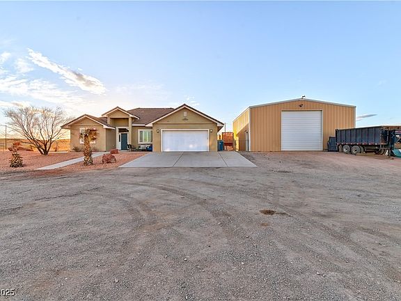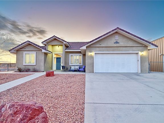 Discover your dream home in Moapa, NV! This custom-built 6-bed, 3-bath home sits on 2.07 acres, offering endless possibilities. Totaling 3,602 sq. ft including a fully finished basement, there’s space for everyone. Recent upgrades include new LVP flooring & fresh front landscaping. Enjoy energy savings with paid-off solar! Step outside to breathtaking mountain views, an above-ground pool with a private deck, and ample space for RVs, horses, or hobbies. A 36x45 (1,620 Sq Ft) steel shop complements the attached 2-car garage. Inside, relax by the fireplace or entertain in the large downstairs game room. No HOA, plus a nearby park, school & library. Don’t miss this rare find!