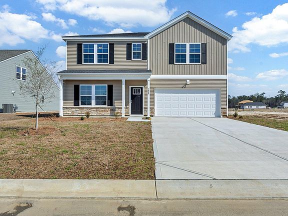 This two-story home features six bedrooms, including a guest suite on the first floor, four full and one-half baths, and a covered back porch. The kitchen comes equipped with white cabinets, granite countertops, and a walk-in pantry. The open-concept kitchen, living room, and dining room make entertaining easy. Complete with pet pad for your furry friend! Upstairs you'll find the spacious primary bedroom suite with bath featuring a raised vanity with dual sinks and quartz countertop, two linen closets and a large walk-in closet. The remaining four bedrooms upstairs share two full baths. There is also a loft, perfect for movie nights, and a conveniently located laundry room round out the top floor. Interior photos are of a completed home for representation, similar features!