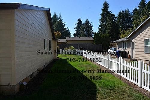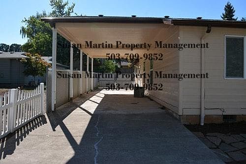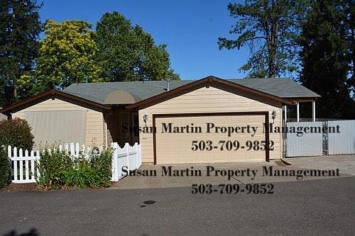 Super clean and carpeted, South Salem single story home with 3 bedrooms, 2 full bathrooms (master has private bathroom), washer dryer hook ups, gas fireplace in living room, A/C, carpet throughout, sliding glass door leads to small patio in back yard. Fully fenced and storage shed. Has 2 car garage with openers and attached covered and gated RV parking 8.5' tall x 9.5' wide x 77' long! Nestled in with just a few other houses on a short street. Available now. Basic professional landscaping included. Applicants must pass background check, no adverse criminal or eviction history according to law, no smoking/vaping or marijuan. Well behaved medium dog possible with rigid restrictions. No cats. Rent is $1695 and minimum security deposit is 1.5 x rent and 100% refundable if you leave it like you found it. Call Susan 503-709-9852, Susan Martin Property Management, an Oregon Licensed Professional. Min Lease