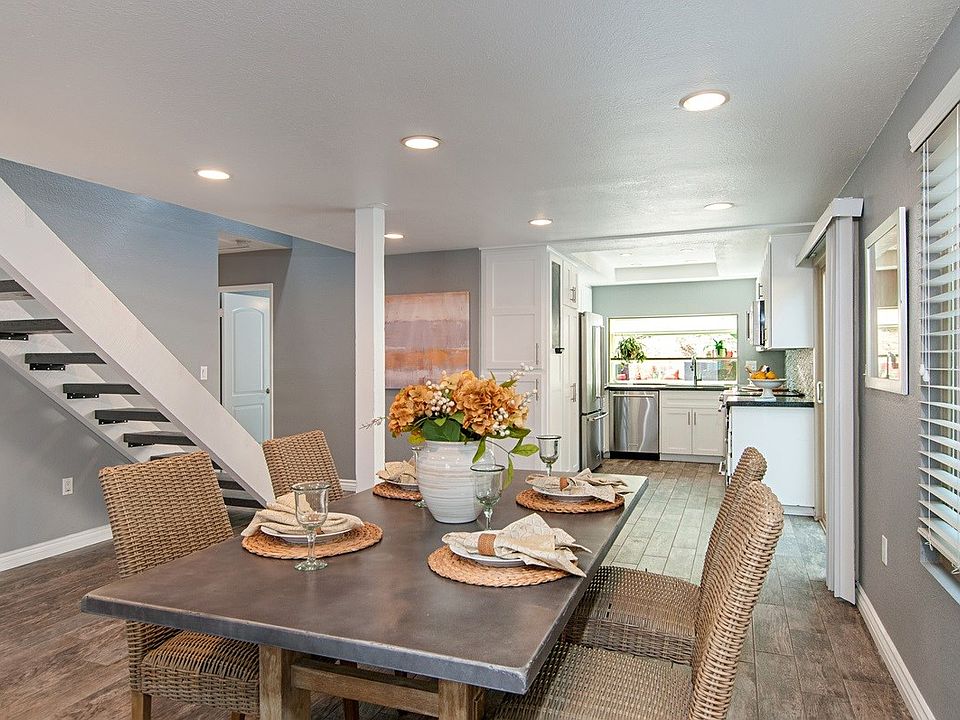 STUNNING Encinitas Home! Great Room w/Cathedral Ceilings. Upgraded Tile flooring, Large Baseboards, Modern Kitchen, Granite counters, S/S Kitchen Aid appliances, Mosaic Tile backsplash & recessed lighting. Cozy fireplace in living room. Travertine & Granite in Bathrooms! Gigantic upstairs bedroom. Highly desirable gated community w/Pool & Tennis Courts. Award Winning SAN DIEGUITO Schools! Perfect Location-close to restaurants, shopping, hospitals & so much more. Amazingly private backyard w/mature trees.