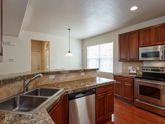 Meticulously maintained 4 bedroom, 4 bath home! Granite tile counters and Stainless Steel appliances in kitchen. Two story family room with lots of natural lighting. Main level bed/office w/full bath and French doors. Huge master has 5pc bath with tile counters/floors, coffered ceilings, and sitting area. Walk in closets in all upper bedrooms. Unfinished basement is ready for your touch, rough in for additional bath. Concrete patios in front and back. Fenced yard. Expansive mountain views from the front of home! 2 car attached garage with extra-long driveway for more parking.