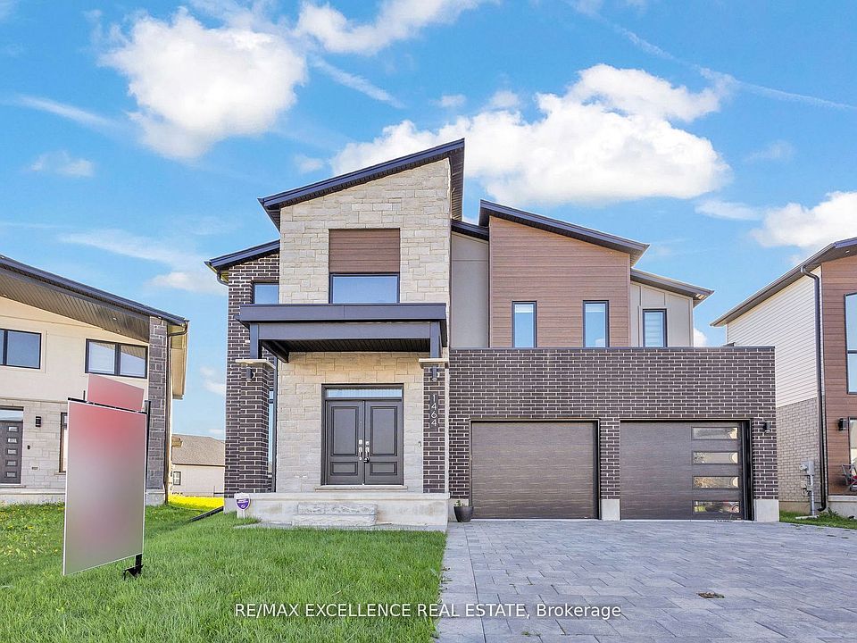 Welcome to 1464 Medway Park Dr, a stunning 2-storey detached home nestled in the prestigious Hyde Park neighbourhood of North London. Built in 2021, this carpet-free, contemporary residence offers 2,685 sq. ft. of luxurious above-grade living space on a beautifully landscaped 42.68 x 111.26 ft lot.The elegant exterior showcases a stone and stucco façade, accented by brick and vinyl sides, a wide driveway, and meticulous curb appeal that reflects true pride of ownership. Step inside to discover an open-concept main floor highlighted by 9-ft ceilings, engineered hardwood flooring, pot lights, and oversized windows that fill the home with natural light. The inviting living room features a sleek electric fireplace, creating the perfect setting for gatherings and relaxation.The chef-inspired kitchen is a true showpiece, boasting quartz countertops, custom cabinetry, stainless steel appliances, a modern backsplash, and under-cabinet lighting. High-end roller blinds throughout the home add a touch of sophistication and privacy.Upstairs, the primary suite offers a spacious walk-in closet and a spa-like ensuite bath. Bedrooms 2 and 3 share a stylish Jack & Jill bathroom, while Bedroom 4 enjoys its own private ensuite-ideal for guests or extended family.A legal separate side entrance leads to the unfinished basement, offering incredible potential for a future in-law suite or income-generating unit. Completing this exceptional property is a double-car garage and parking for up to six vehicles.Experience the perfect blend of modern comfort, design, and location-this home truly stands out in one of London's most desirable communities.