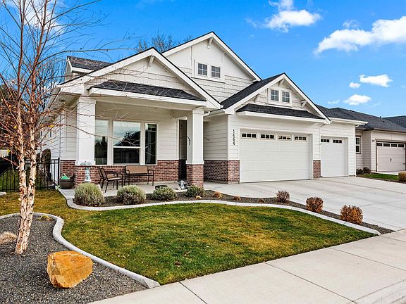 Discover the epitome of effortless living in this impeccably designed single-level patio home by Ted Mason Signature Homes. Nestled in a charming modern New England-style community, this residence boasts timeless sophistication & thoughtful upgrades. A 3-car garage complements the exquisite interiors featuring quartz counters, custom knotty alder cabinets & premium LVP flooring. The gourmet kitchen is a chef’s dream w/ Bosch appliances, generous center island & a spacious pantry flowing seamlessly into the great room. The Primary suite is a serene retreat w/ tray ceiling a spa-inspired ensuite w/ dual vanities, walk-in tiled shower & spacious closet. The dedicated office w/ built-ins adds functional elegance. Outside, a private patio & updated landscaping create a tranquil oasis. Enjoy a community gazebo, fire pit & BBQ area while being only steps from Meridian's vibrant lifestyle of shopping, dining & entertainment.