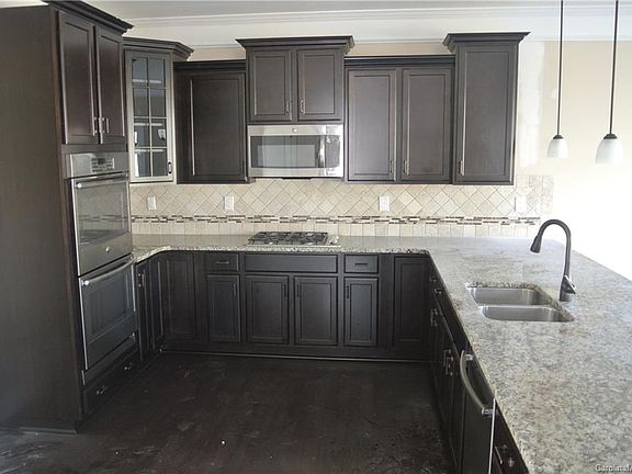 Tons of options and upgrades! Double stainless wall oven in gourmet kitchen with staggered kona cabinets with pull outs, granite, tile backsplash and more HUGE eat up island for entertaining! Hardwoods throughout downstairs, tile around master tub, shower and on all floors in wet areas! Metal spindles on stairs, this home has it all!