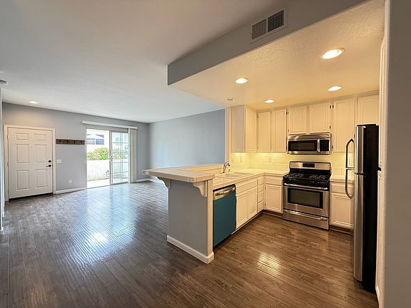 This upgraded townhome checks all the boxes for comfortable living in a welcoming neighborhood near top-rated schools and parks. Inside, enjoy new appliances (dishwasher, washer, dryer), stylish laminate flooring, and blackout blinds in both bedrooms. Central A/C and ceiling fans keep things cool, while the attached two-car garage offers plenty of extra storage. Community perks include a pool and playground, with a large public park just a short stroll away. Walk to Mission Vista High and Mission Meadows Elementary, and explore nearby Guajome Park's scenic trails and natural beauty. Owner prefers a 2-year lease and is committed to minimal rent increases. Tenant pays for water gas, electric and internet. Owner/HOA covers trash.