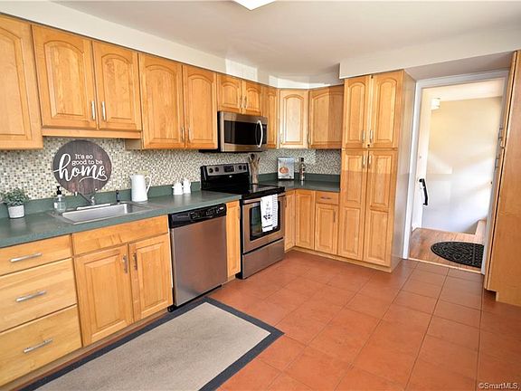 This North Haven renovated mid-century ranch style home promises to "wow." Soaring 10+ foot ceilings in the living room offer an impressive experience in the space along with the floor to ceiling stone, wood burning Fireplace. The open concept living room/dining room are flanked by beautiful hardwood floors as are the 3 bedrooms. The huge 3 season sun room would be a welcomed space to use for an afternoon lunch or sit back and relax indoors during winter months to watch the snow fall behind the atrium style glass door. The home is flooded with light as it has a multitude of large windows throughout. Turn the master bedroom into your sanctuary with its beautifully renovated full bathroom with tiled shower and a walk-in closet w/laundry. Brand New kitchen with island/bar chairs and renovated second bath. New central air and HW heater New composite deck and pergola. All walls and ceilings have been freshly painted and the roof is brand new. The location of this home is ideal - seconds to both I-91 and the Merrit Parkway, minutes to shopping, town center, and a central location to area restaurants.