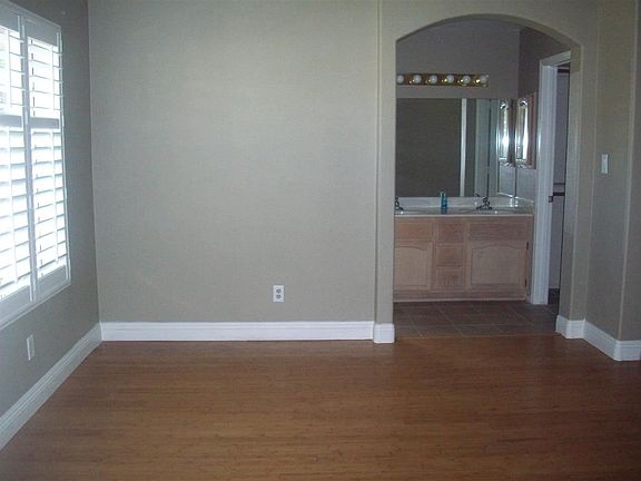 3 Br 2 ba split floor plan home with 2 car garage. Vaulted ceilings in the living areas and master bedroom. Ceiling fans and plantation shutters throughout. Master bedroom suite with walk in closet. Larger kitchen with island and built in desk area. Kitchen with gas range/oven, microwave, and dishwasher. Larger covered back patio great for entertaining. Landscaped front & back on auto sprinklers. Garage with opener & remotes. Utility rm with washer/dryer hookup. Clean and ready to move in.