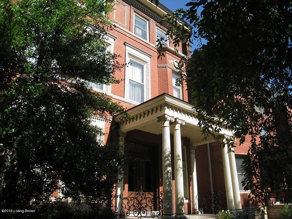 Italianate styling from the mid 1890s can be seen in this 3 story brick Victorian home on Millionaire's Row in Historic Old Louisville. Restoration and renovation over the last 14 years have touch most every surface returning it to a stunning single family home with incredible period features and accents. The front porch has iron side rails and a ceramic floor and opens to double oak front doors with beveled glass inserts. The leaded glass transom above the front door mimics the 3 small rectangular windows over the modified bay windows and the original window seat. The grand foyer boasts an original gas electric light fixture recovered from the neighborhood. Koi fish on the double mantel oak fireplace are examples of the period. The curving 3 story staircase begins with newel posts with antique bronze lamps, has a landing with stained glass windows and a similar window on the next landing. Throughout this home you will find refinished woodwork of quarter sawn oak, cherry, birds eye maple and old pine on the floors, mantels and doors. Lush finishes from old times and refurbished and relocated in recent times, Pocket doors establish the front parlor, the fining room, foyer and halls. The rear staircase landings create spaces for gathering, accenting and multiple to access to the bar room, powder room, basement, outside and kitchen suite. The cherry kitchen boasts cabinetry to the ceilings, a granite topped eat at island with gas 6 burner + grill cook top & warming oven, under counter refrigerator and freezer drawers, dishwasher, ice maker. Accompanying the kitchen is the baking room with loads of cabinetry and two multi-function ovens. These areas are complete with heated ceramic floors for that toasty feel on cool days. Adjoining the kitchen is the family room containing a fireplace and it can be used as a large breakfast room. The 2nd floor contains the master suite with dressing room, deluxe Victorian styled bath (heated floors). These rooms total the front of the mansion. The middle bedroom has a fireplace mantel and shares a recent jack & Jill bath with the rear bedroom. The bath has a furniture vanity and ceramic shower with glass wall and door. The large game/family room will hold most oversized furniture and game tables and has 4 recent stained glass windows. Just off this room is the 2nd story covered porch overlooking the elaborately landscaped rear yard and carriage house? This floor has two heating cooling systems for your comfortable and easy control. The 3rd floor can be another suite with sitting room, equipped kitchen with laundry, bedroom, full bath and dressing room/office. Each of these rooms is exquisitely finished with great natural light. This floor has its own heating cooling system. These rooms can be bedrooms, offices or multiple uses. The home has a full basement with several storage or workshop rooms, two water heaters with circulating pump, laundry and an outside entrance. The landscaping both front and rear has elaborate plantings, hardscape and a pond with flowing 4' fountain which is great in the winter when it makes an ice sculpture. Tiered rear porch overlooks lush landscaping. The 2 story frame carriage house is a 2.5 car garage on the first floor and a one bedroom apartment on the 2nd floor. Central air and heat plus a local water heater and equipped kitchen delight for guests, friends, an office or potential tenants. are all the comforts of home from yesteryear and today located between the Speed Museum/University of Louisville campus and downtown on Millionaire's Row in Historic Old Louisville have a front row seat to the St. James Court Art Show, Derby Festival Races and gracious period lighting and wide treed street ready for all the comforts of city living. Thanks for reviewing the tastefully restored home of Benjamin Strauss, a prominent drug goods magnate in the late 1890s.