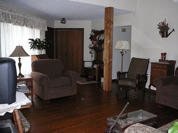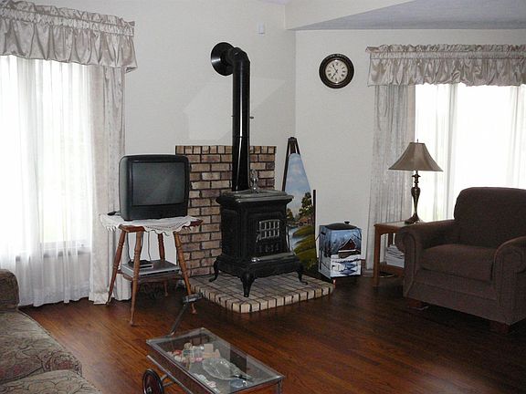 Unique country living with this 1500 sq.ft. octagonal home on 10 wooded acres! This home has a peaceful setting, room to roam & is move-in ready. Walk in and appreciate the hardwood floor, newer country kitchen w/ gorgeous ceramic back splash, plenty of cabinets, large pantry & newer refrigerator.The main floor also features a homey living rm. w/wood stove, updated bath, large laundry room and master bedroom.The lower level has a family/rec. rm, bonus room, outside access & storage . The roof is 2 yrs. old, newer water heater and the furnace is like new as the home has been heated w/wood. The pole barn has elec., some concrete floor and workshop. The back deck is large enough to entertain family and friends as you appreciate nature at it's finest.