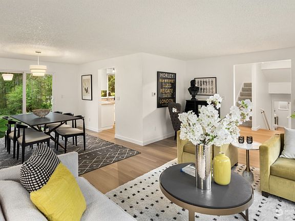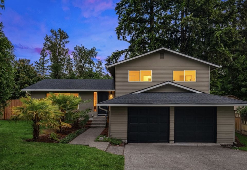 Welcome to your newly remodeled home by Lake Young Trail. This beautifully updated tri-level offers the perfect blend of modern comfort and timeless charms. The main level seamlessly blends the kitchen, dining room that opens to the outside and living area with abundant natural light. Venture upstairs to all 3 bedrooms, including the primary with an en-suite bathroom and walk-in closet. The other 2 bedrooms share a full bath. Descend downstairs to a cozy family room, with a wood stove for the cooler nights and a convenient guest bathroom and direct access to a private fully fenced backyard with green space views for entertaining and family time. The lower level provides access to a spacious 2-car attached garage with plenty of storage space. Ample windows allows natural light to flood the interior. Located within excellent school district. Close to 1-405, 167, and I-5.