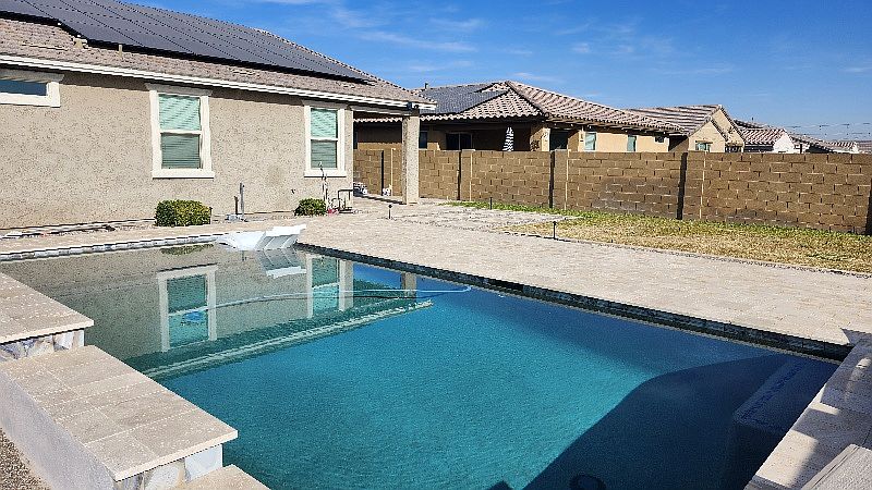 Fantastic 5 bedroom 2 bath home in Marley Park! Fresh paint, ceiling fans, and blinds throughout. Lovely faux wood plank tile in all the right places. Split floor plan. Kitchen comes with all stainless steel appliances. Large pantry and plenty of cabinet space. Durable quartz countertops in kitchen and all bathrooms. Jack and Jill hall bathroom. Spacious primary bedroom has large walk-in closet and walk-in shower. Front bedroom has a full bathroom next to it which is great for guests. Backyard is made for entertaining. Enjoy evening barbecues, make a splash in the play pool, or toss a ball on the green grass. Save hundreds yearly with solar. Access to 3 community pools, with one right around the corner! Marley Park offers many amenities including parks, community pools, club house access, and local schools. Close to loop 303 and Prasada shopping center $50 nonrefundable application fee per adult. All adults must apply. Income must be at least three times the rent . Tenant to verify all pertinent facts. Tenant is responsible for $145 monthly pool fee.