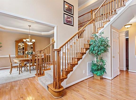 Stunning home shows like a model! Elegant transitional sits on a private lot at the end of a quiet cul-de-sac. Great living space for your family & perfect flow for entertaining. FINISHED WALK-OUT basement is awesome! Huge, light-filled space for all of your recreation needs. Welcoming 2-story foyer opens to well-appointed formal rooms & 2-story family room w/ a wall of windows! Kitchen is a chef's dream w/ double ovens & ample work space on gleaming granite counters. Great storage in the 42" cabinets (w/slide-out shelving) + nice pantry. Living area is open & bright: the perfect place to host a gathering of friends & family! Private office is located at the rear of the house so there's a quiet place to work w/o interruption. Open staircase + catwalk lead to 4 big bedrooms. HUGE master suite has 2 big, walk-in closets + an AMAZING luxury bath w/DEEP soaking tub, tile/glass shower, double vanities & beautiful tile work. 3 more nice bedrooms, all w/ceiling fans & double closets + another full bath. Large deck overlooks private, wooded lot & beautiful patio off of the basement - enjoy the beauty of the changing seasons! This is the ideal family home! #1 schools & community! MUST-SEE!