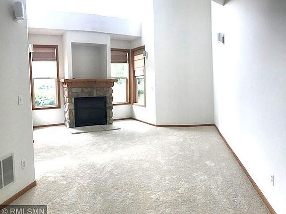 Beautiful End-unit. Well cared for property in a great Ramsey location at Symphony Town Center. Brand new carpet throughout main floor with spacious open floor plan. Lovely stone gas fireplace with cathedral ceiling and awesome windows offering lots of natural light! Great kitchen with lots of cabinets and pantry. Plenty of counter space and large breakfast bar. Easy access from garage to kitchen area with no steps! First floor convenient 1/2 bath. Upper level vaulted primary suite with walk-through full bathroom. Upper bathroom is very spacious with dual sinks and private bath area and lots of storage. Large 2nd Bedroom with walk-in closet. Upper level laundry with full size washer and dryer. Loft separates both bedrooms for added privacy. Private front porch and 2-car attached garage. Looking for a great investment, rentals are accepted in this HOA. Great investment opportunity with high rent capability! Town Center Park is only 2 blocks away and offers fun family entertainment during the summer. Ramsey has tons of parks, walking trails, convenient shopping and eateries. Come see this great home today!