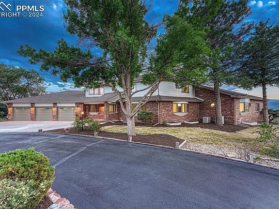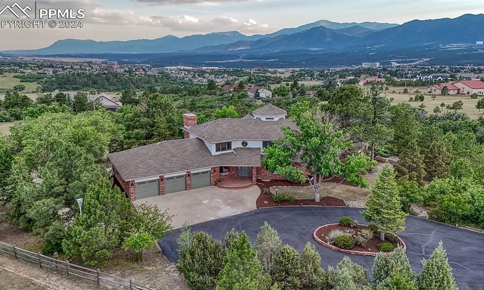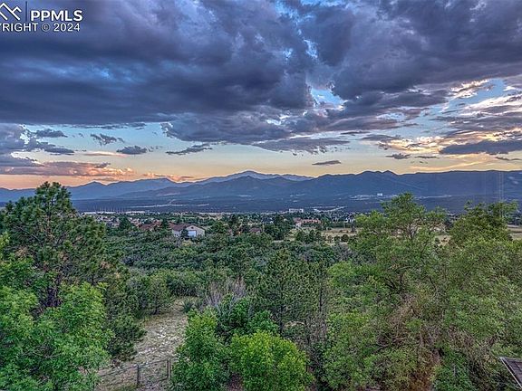 Welcome to your dream home in the highly sought-after Sun Hills community! This stunning 5-bedroom, 5-bathroom, 2-story residence sits on more than 5 acres of wooded land & offers unparalleled views of the Front Range. From Pikes Peak framed in perfect harmony with the mature trees, south to Cheyenne Mountain, north toward Palmer Park. Plus you'll have unobstructed views of the Air Force Academy & the hoodoos popping up in the distance. From the moment you pull into the private drive until you unwind in one of the outdoor living spaces, this home is perfectly designed for both comfort & luxury. Step into the main level where you'll find an inviting living space, formal dining area, laundry room, & gourmet kitchen perfect for entertaining; complete with stainless appliances, double oven & all the counterspace any home chef could need. All that, & just steps from the expansive deck where you can enjoy outdoor dining year round. Also on the main level, the spacious primary retreat with sitting room, a luxurious en-suite bath, soaking tub & ample closet space. Step out to the deck to enjoy the views, meander the grounds or marvel at the scenery. Four additional bedrooms provide plenty of room for everyone to have a quiet corner. Bonus rooms on every floor offer creative spaces; think home gym or craft room. Climb the spiral staircase to check out the charming viewing loft that will wow with breathtaking vistas. For car enthusiasts or those needing extra storage & workspace, this property includes a 3-car attached garage & a detached 2-car garage with room for a workshop & additional storage. Sun Hills is unique in that it is the only neighborhood on the north end offering such desirable acreage so close to I-25 AND in prestigious Academy District 20. You really can have it all! This home combines the best of country living with the convenience of being close to your favorite amenities. Don’t miss the opportunity to make this exceptional property your own!
