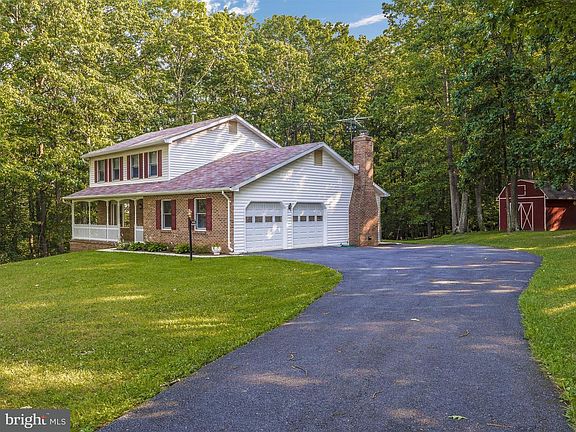 Freshly Painted & Carpeted Traditional Front Porch Colonial on 4.15 Acs! Kitchen & Breakfast Area opens to Family Room w/Gas Fireplace; Large Living Room w/Bay Window opens to Dining Room, 4 BR, 2 Full BAs on Upper, and One BR/Full BA and Den/Office & Storage Space on Lower Level; 2 Car Garage & Patio off Family Room nicely Compliment this Home - Minutes form the town of Mt Airy w/Amazing Views!